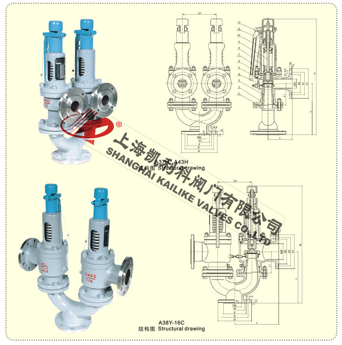 A38Y、A43H、A37H雙聯安全閥結構主要是給安裝單位提供具有更好的了解該A38Y、A43H、A37H雙聯安全閥的外形結構、使用時考慮到工況、環境等因數在應用中有著更合理的計劃規范,不會在安裝時產生空間使用不合理等常見問題。本結構圖所屬上海凱利科閥門有限公司提供,并提供相關外形尺寸,在應用中可以作為參考。
