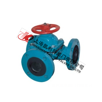 G49J三通襯膠隔膜閥是一種特殊形式的截斷閥,啟閉件采用EPDM橡膠材料制成的隔膜,把閥體內腔與閥蓋內腔及驅動部件隔開,下部閥體內腔與上部閥蓋內腔隔開,使位于隔膜上方的閥桿、閥瓣等零件不受介質腐蝕,省去了填料密封結構,且不會產生介質外漏,閥體流道采用全襯膠設計,避免閥體受工況介質腐蝕,增加了閥門使用壽命。襯膠隔膜閥專用于控制非腐蝕性或一般腐蝕性介質,閥體,內腔表面無襯里或覆有可供選擇的各種橡膠,適用于不同工作溫